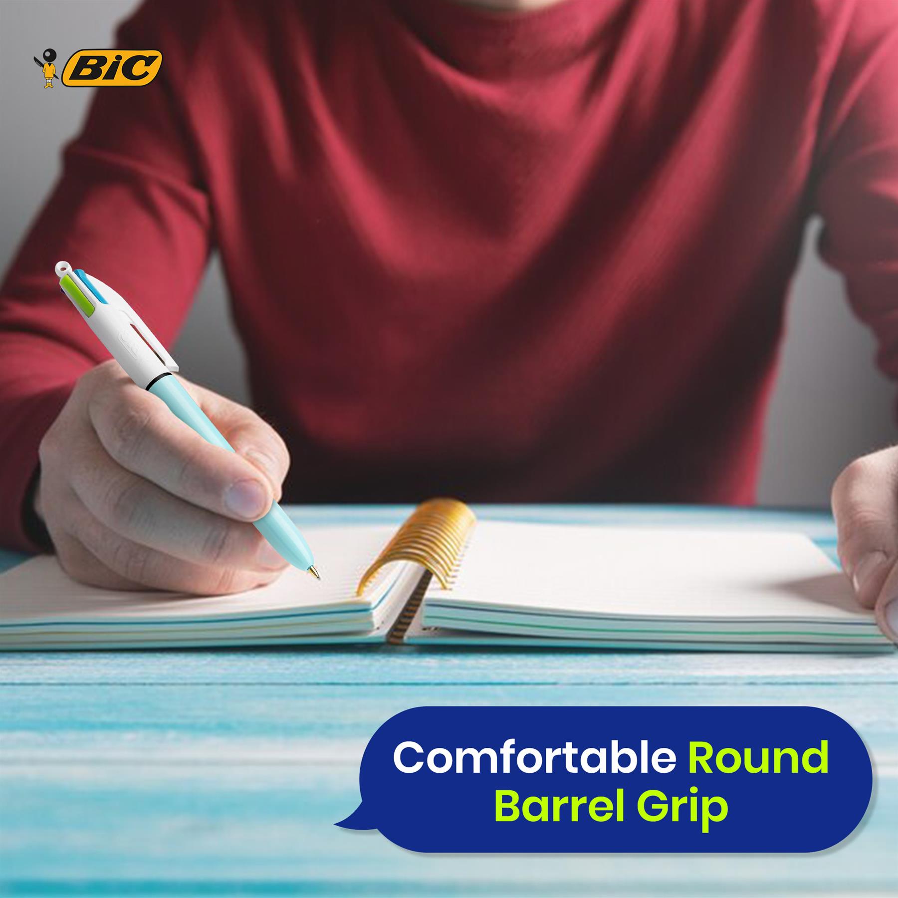 PACK DETAILS & VIBRANT INK OPTIONS - Our BIC 4 colour pens all in one come in a pack of three, featuring two Original pens and one Fun pen. Each provides four vibrant ink colours, with pastel sky blue or lilac barrels for the Fun pen, shipped randomly, ensuring a practical and stylish writing solution for any task.