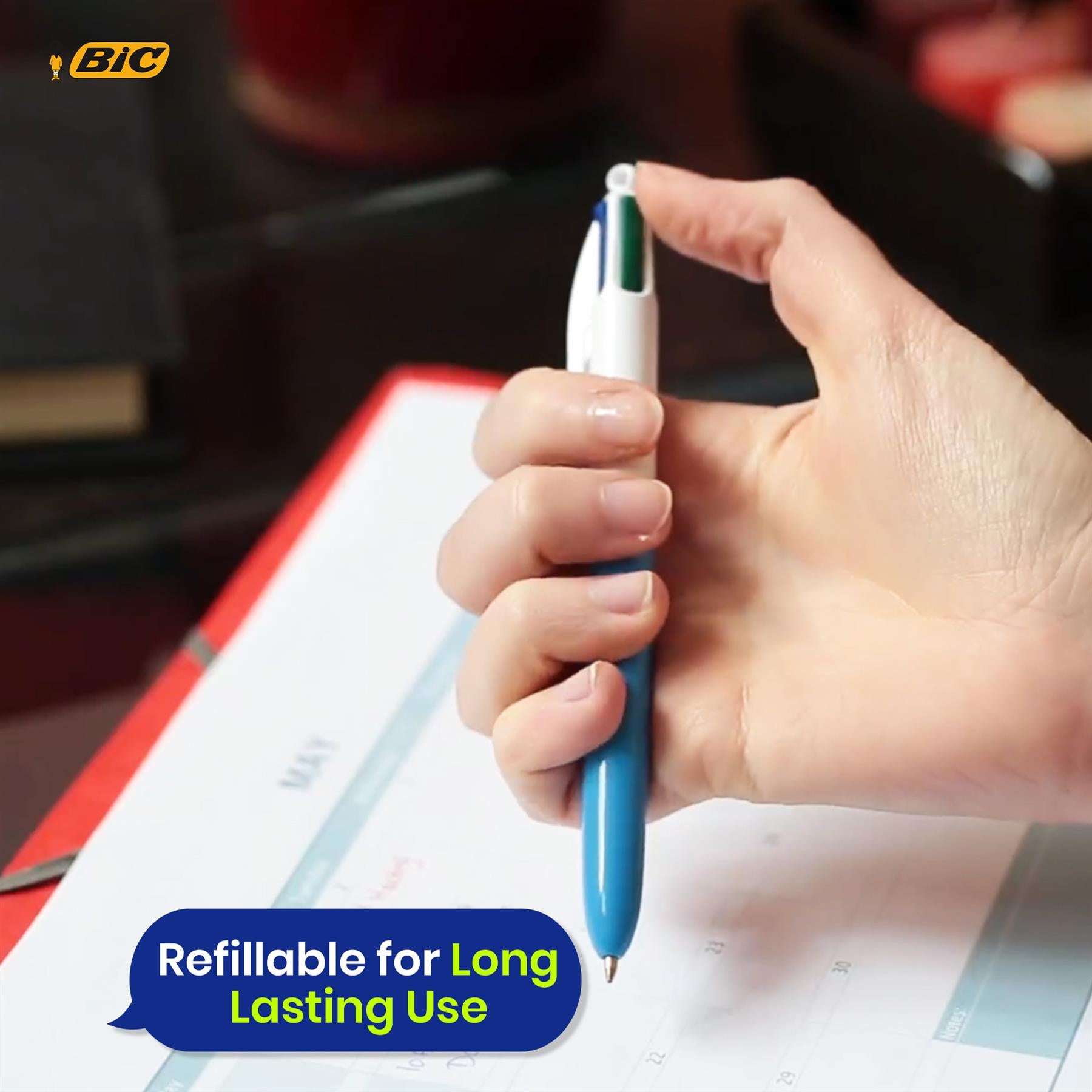 PREMIUM BUILD & DURABLE DESIGN - Our multi pens 4 in one are crafted from high-quality plastic with a smooth finish, ensuring durability and effortless handling. Featuring a precise retractable mechanism, these pens allow quick ink selection, while the refillable 4 Colours Original pen ensures long-lasting use with minimal waste.