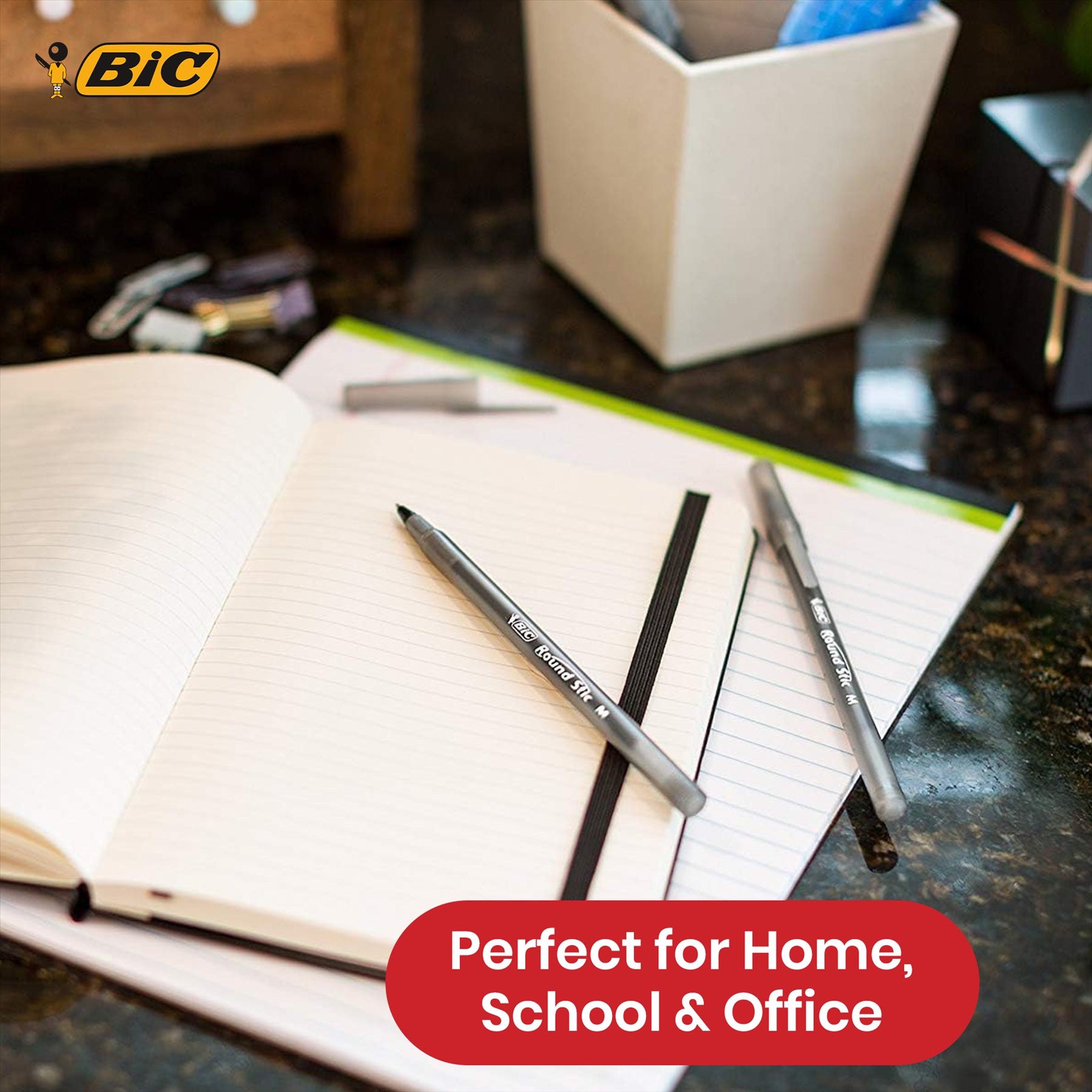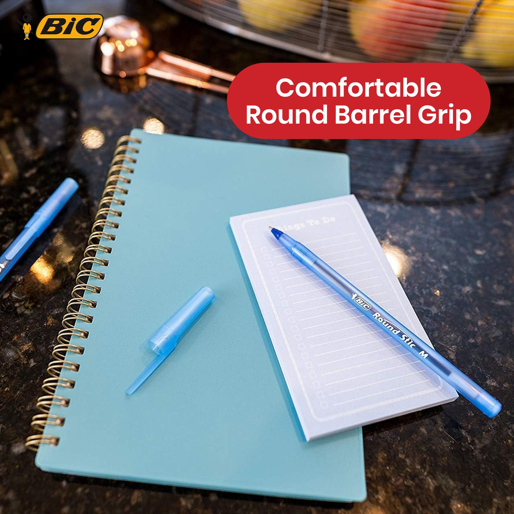 BIC ROUND STIC EVERYDAY PENS – Enjoy smooth writing every time with Bic Round Stic Medium Ball Pens. This multipack includes 4 packs of black pens and 4 packs of blue pens, making them reliable for use in school, the office, or at home, so you can tackle daily writing tasks with ease