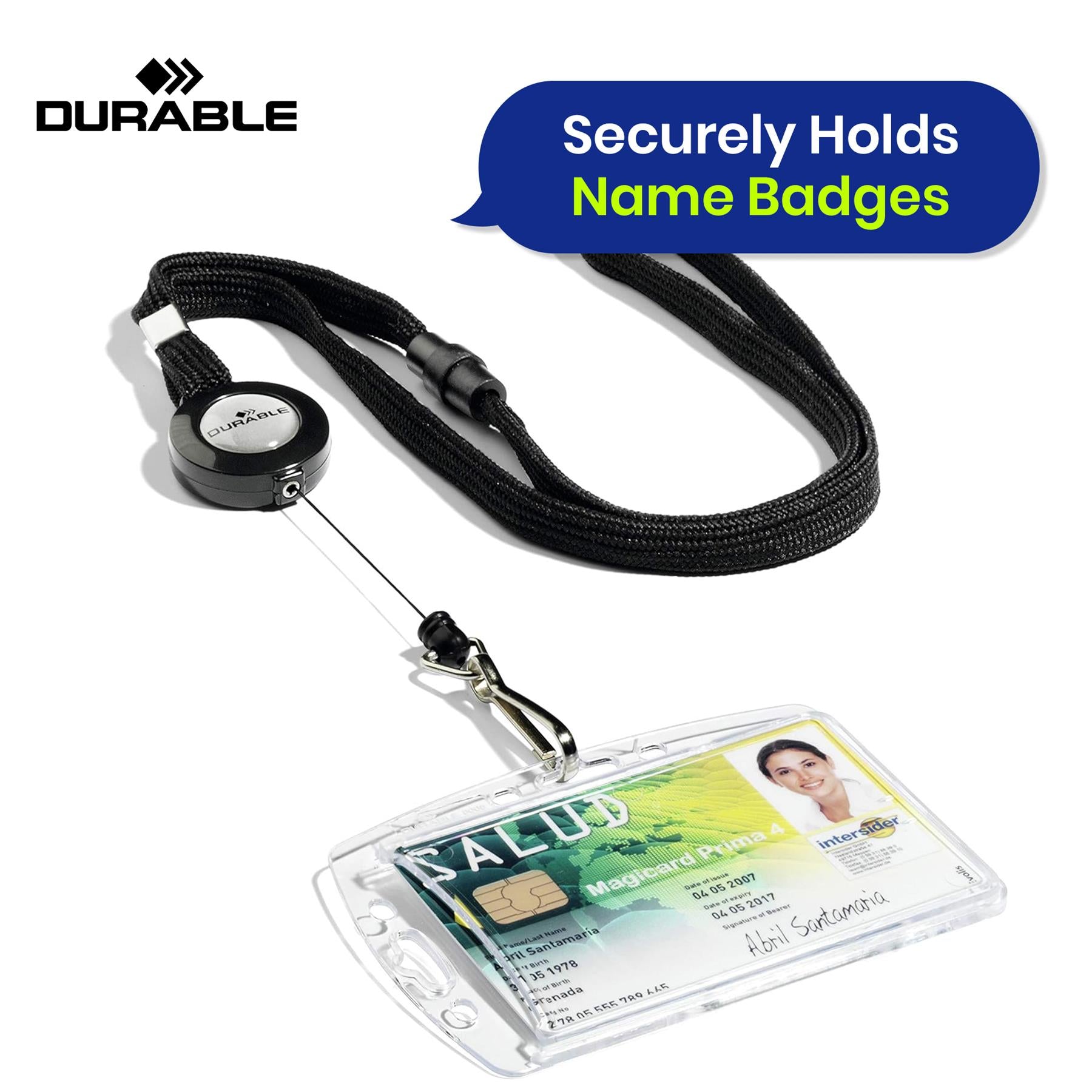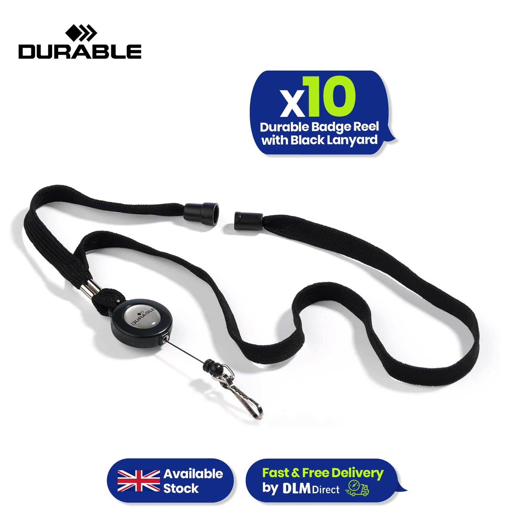 Durable Badge Reel with Black Lanyard Pack of 10 Retractable Card Holders for Name Badges ID Badges Key Fobs & Security Passes