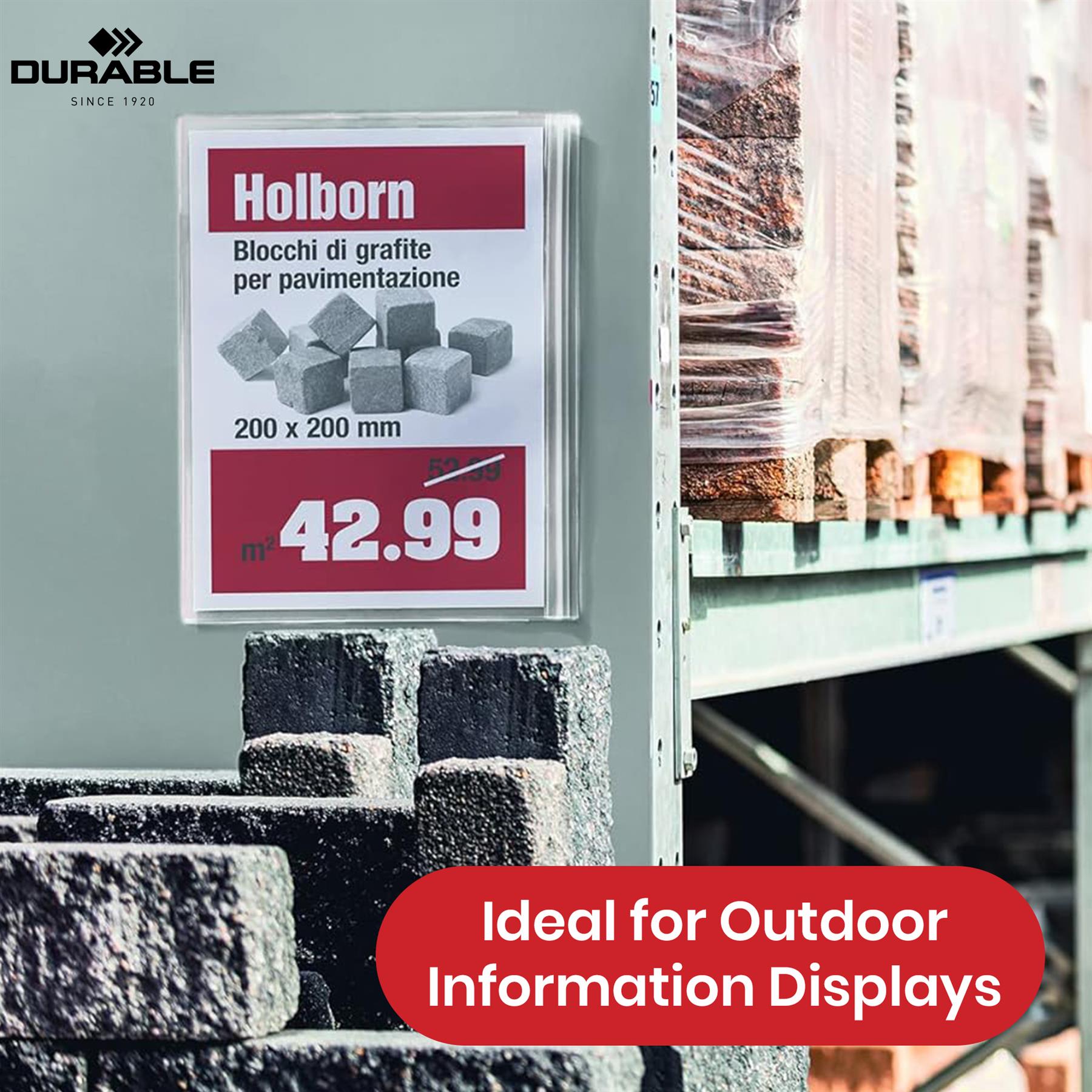DURABLE A3 PLASTIC WALLETS – Durable brings you high-quality transparent plastic wallets designed to protect A3 documents both indoors and outdoors. Whether you are displaying posters, signage or notices, these self-adhesive pockets provide a reliable way to keep papers visible and protected