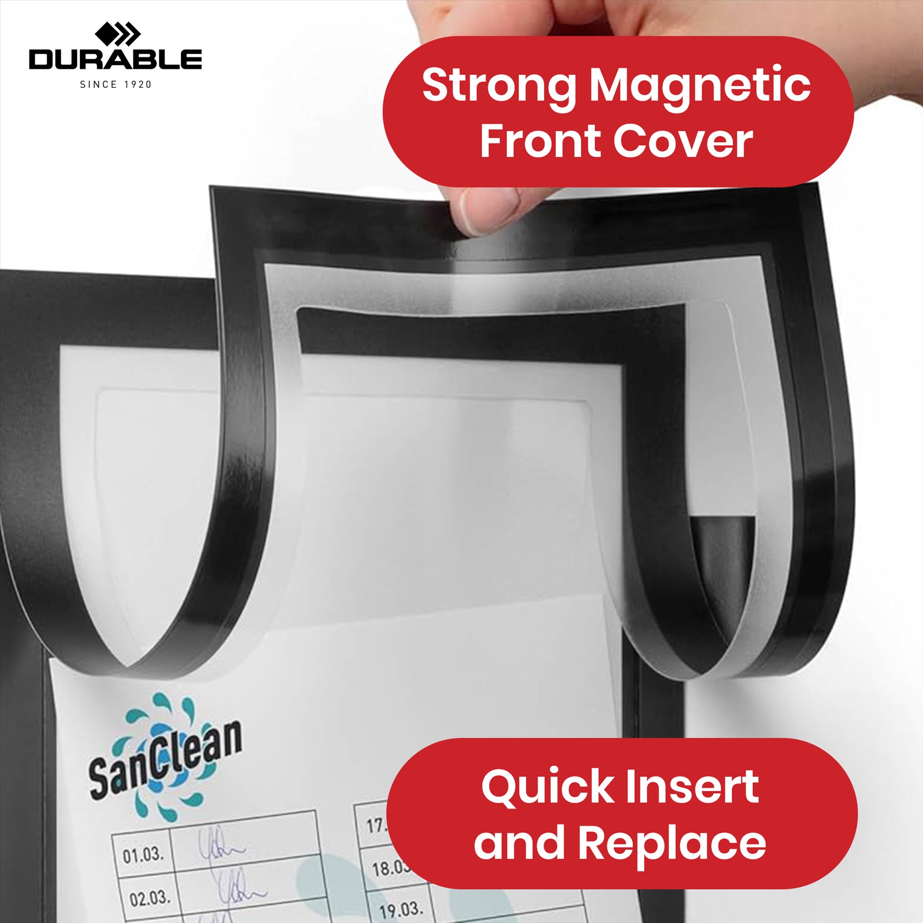 STRONG MAGNETIC FRONT COVER – The fold-back magnetic front cover secures your documents tightly in place. Pages stay neat and protected while still allowing you to swap them out in seconds. No curling edges, no wasted paper, just a simple and secure document display