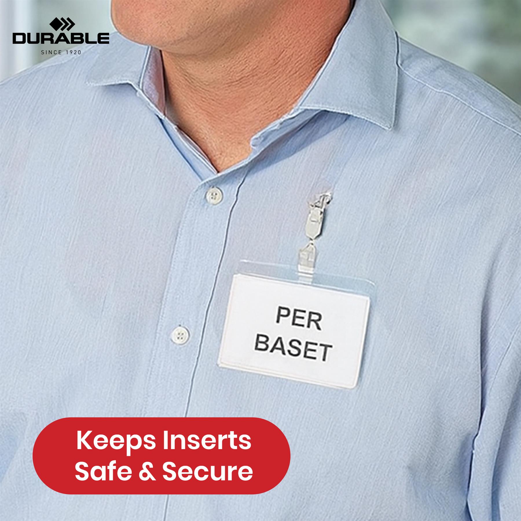 DURABLE SELF LAMINATING ID CARD HOLDERS – Keep your ID, passes and name tags protected with these self laminating card holders. Transparent, strong and reusable, they make ID display easier at conferences, offices and events while preventing damage or loss of your important cards