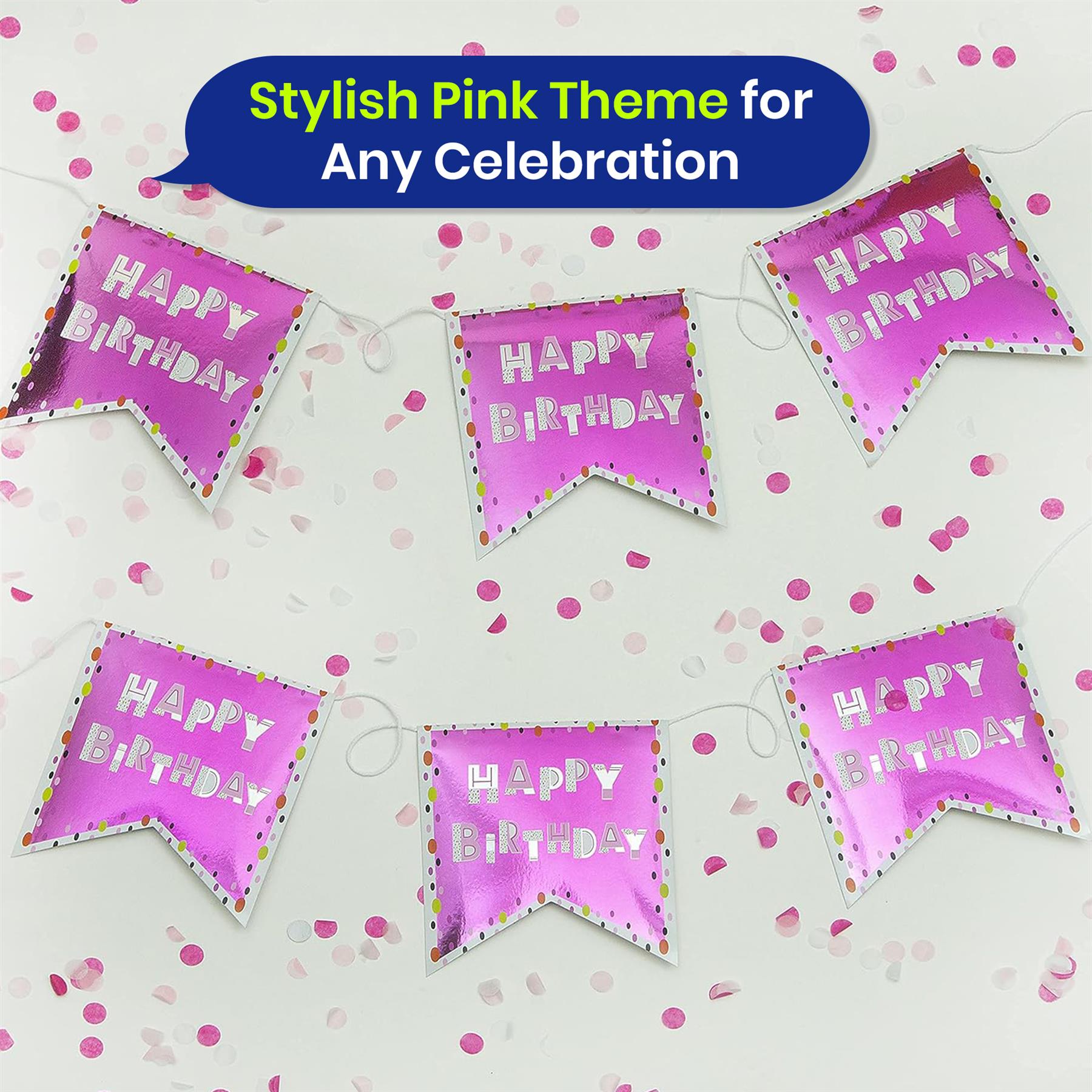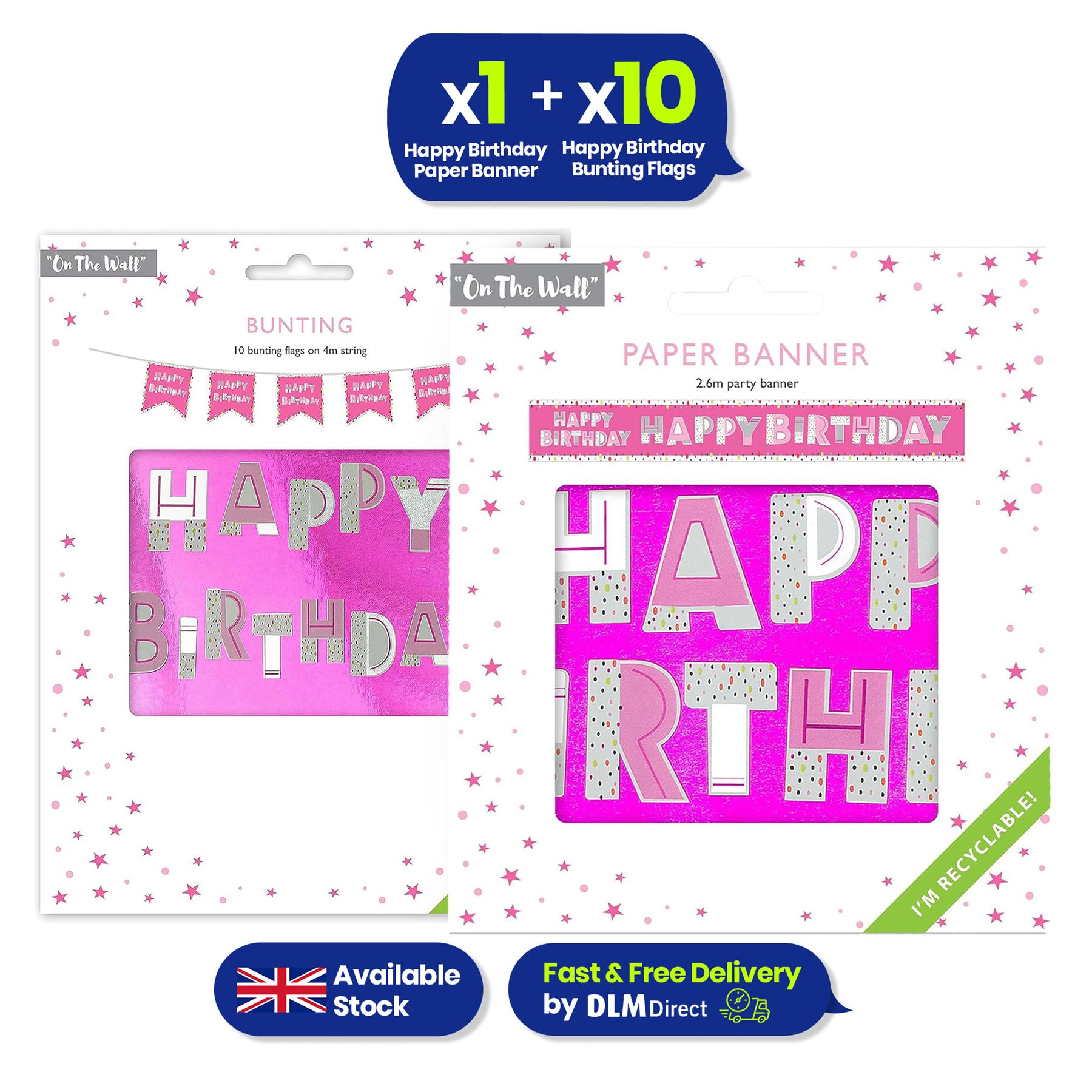 Happy Birthday Pink Bunting and Banner Set Ready to Hang Paper Party Decor