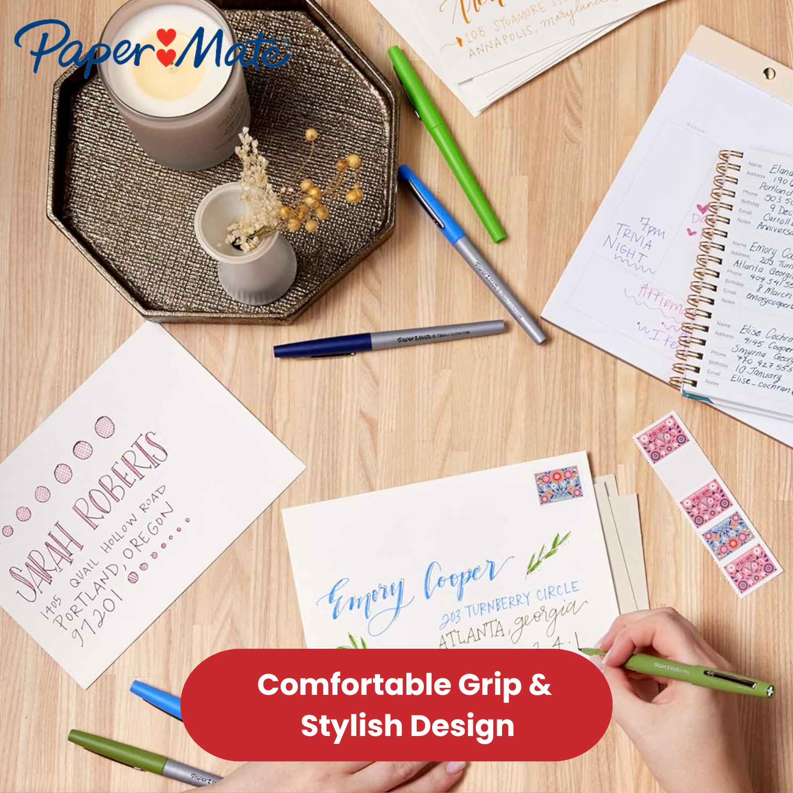 No-Bleed Ink Technology: Enjoy a smooth and seamless writing experience with quick-drying, water-based ink that prevents smudges and bleed-through. Ideal for use on a variety of paper types, keeping your work neat and professional every time.
