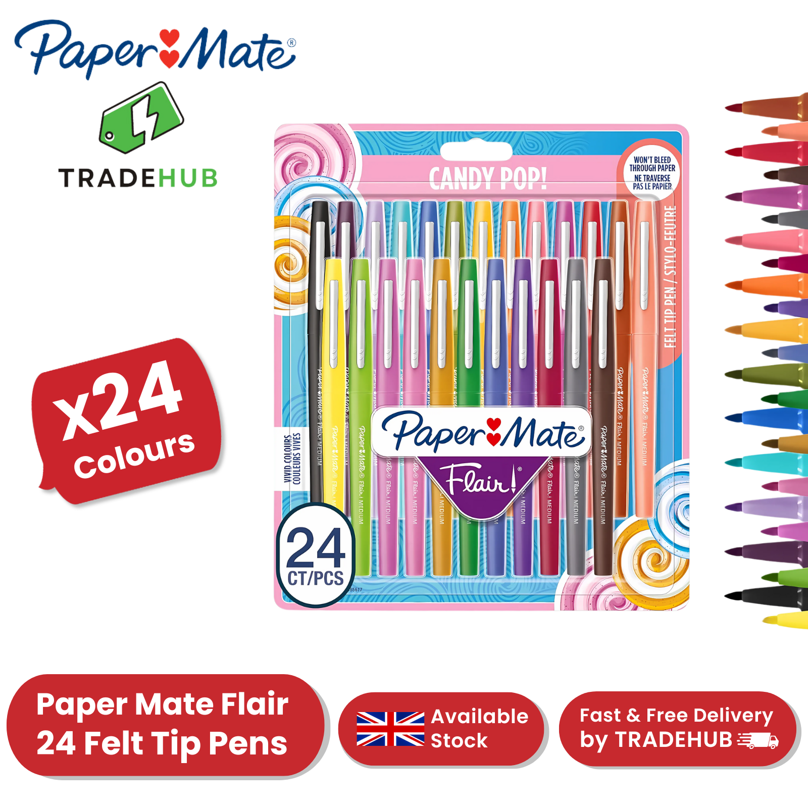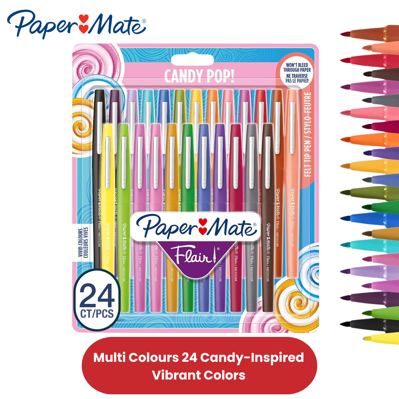 Paper Mate Flair Felt Tip Pens Candy Pop (Pack of 24) - Vibrant Multi Colors Ink