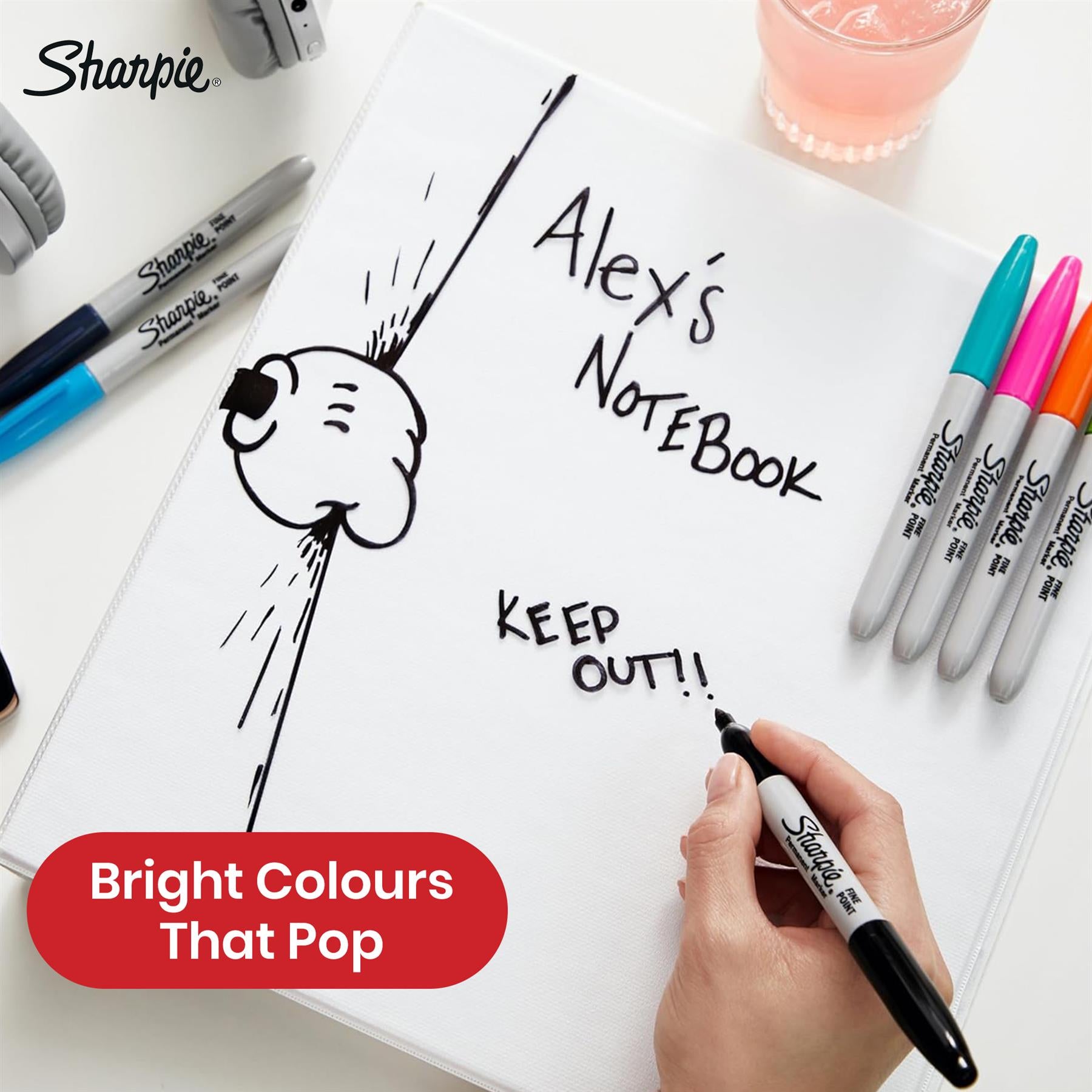 Sharpie Fine Point Permanent Markers deliver vivid colour & detailed writing across a wide range of surfaces. These fine tip pens offer smooth, controlled ink flow while coming in 18 bold colours for everything from colour-coding, designing, colouring, crafting & various art projects.