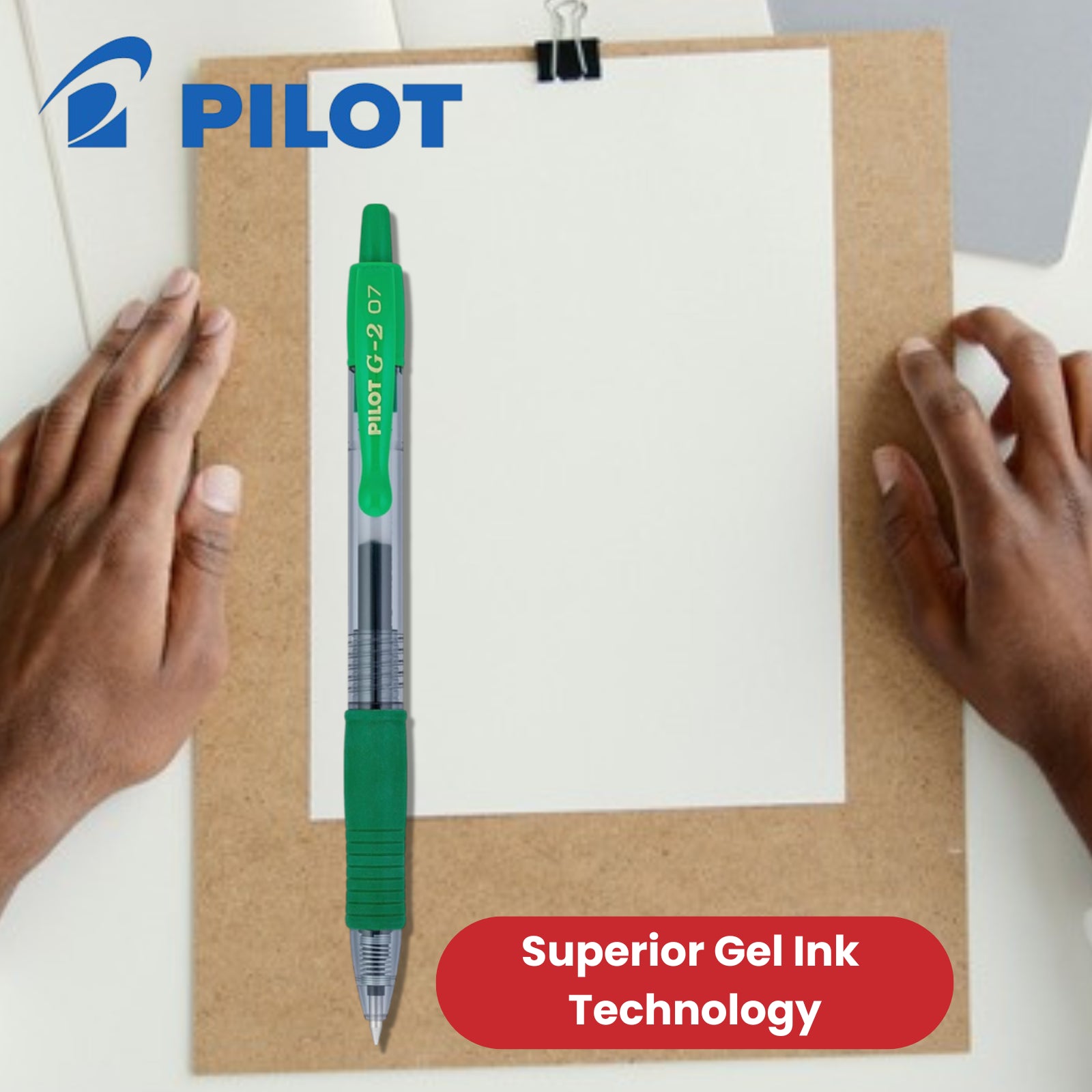 Vibrant Green Gel Ink:Â Featuring green gel ink, the Pilot G-207 ensures bold, vivid lines that stand out on paper. The ink dries quickly to prevent smudging, while its vibrant color enhances visibility, making it perfect for highlighting important notes or creative writing.