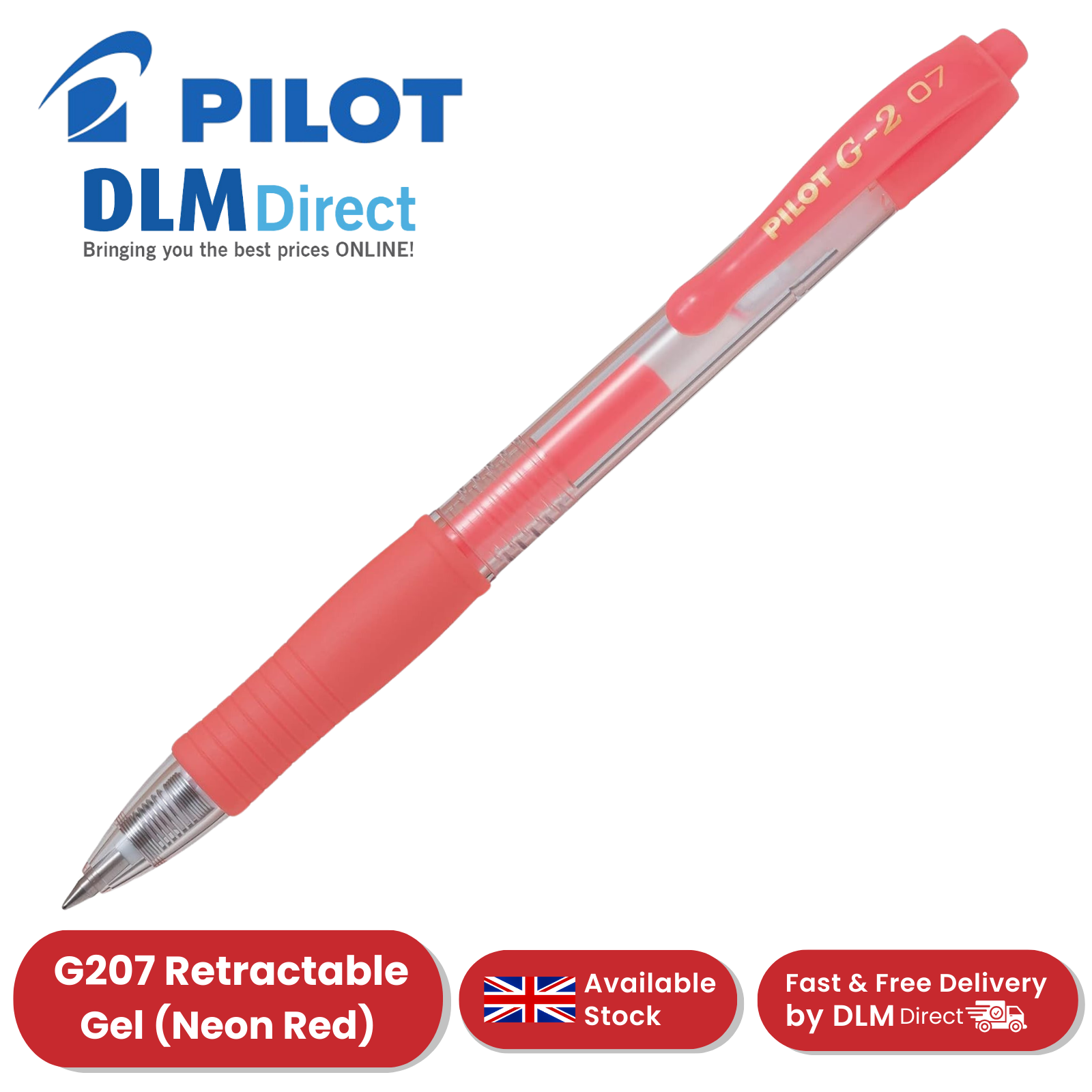 Pilot G207 Neon Red Gel Pens - Smooth & Precise Writing, Refillable, Vibrant Ink