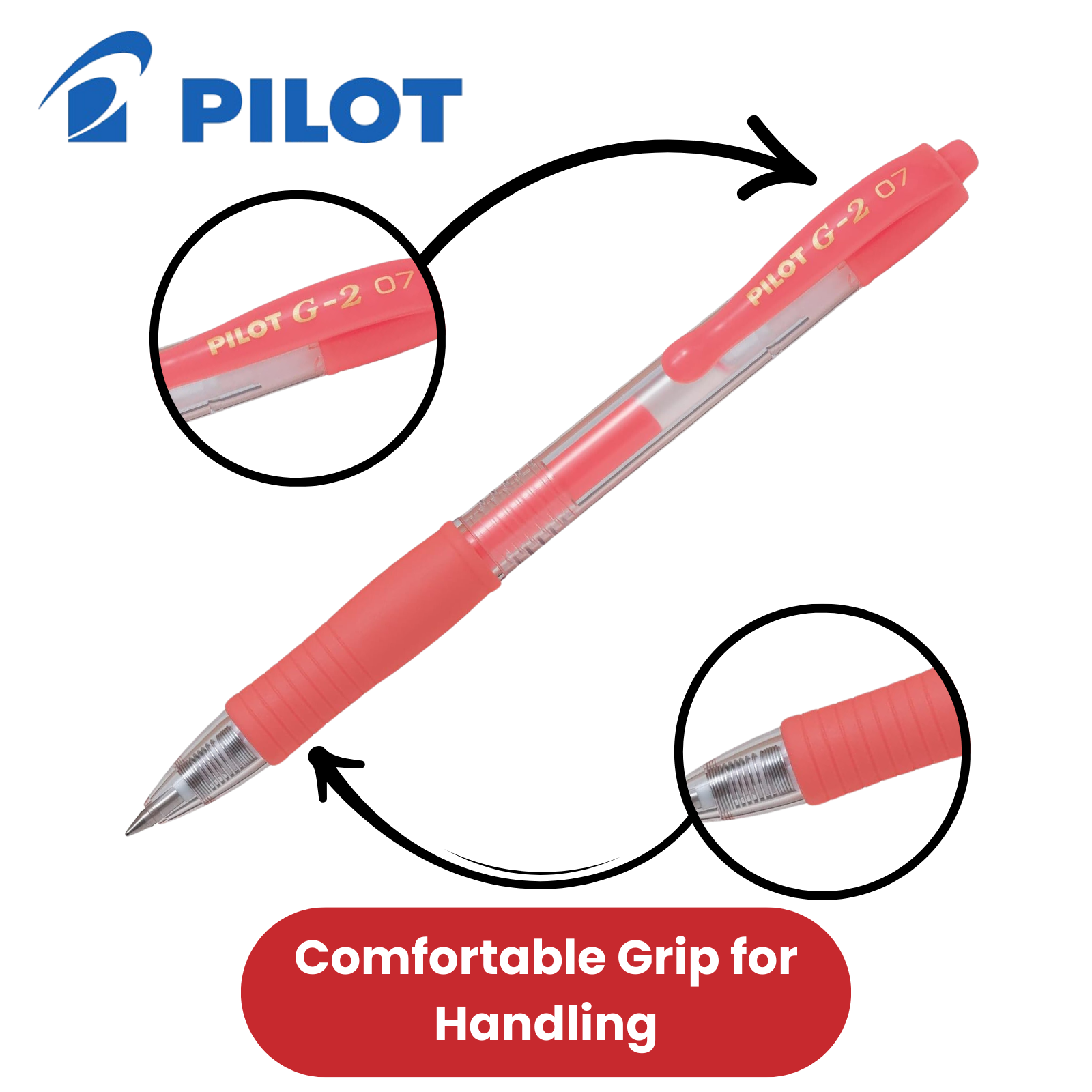 Comfortable Grip for Extended Use: The Pilot G2 07 Neon Red Gel Pen features a contoured rubber grip, providing comfort and control during extended writing sessions. Its ergonomic design ensures that your hand stays relaxed and free from strain, whether you're writing, drawing, or doodling.