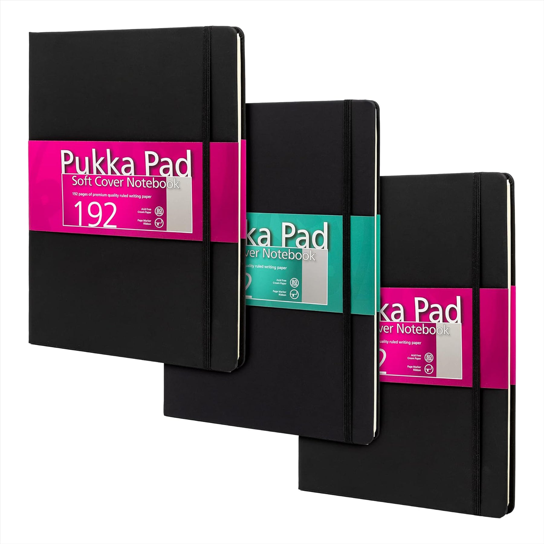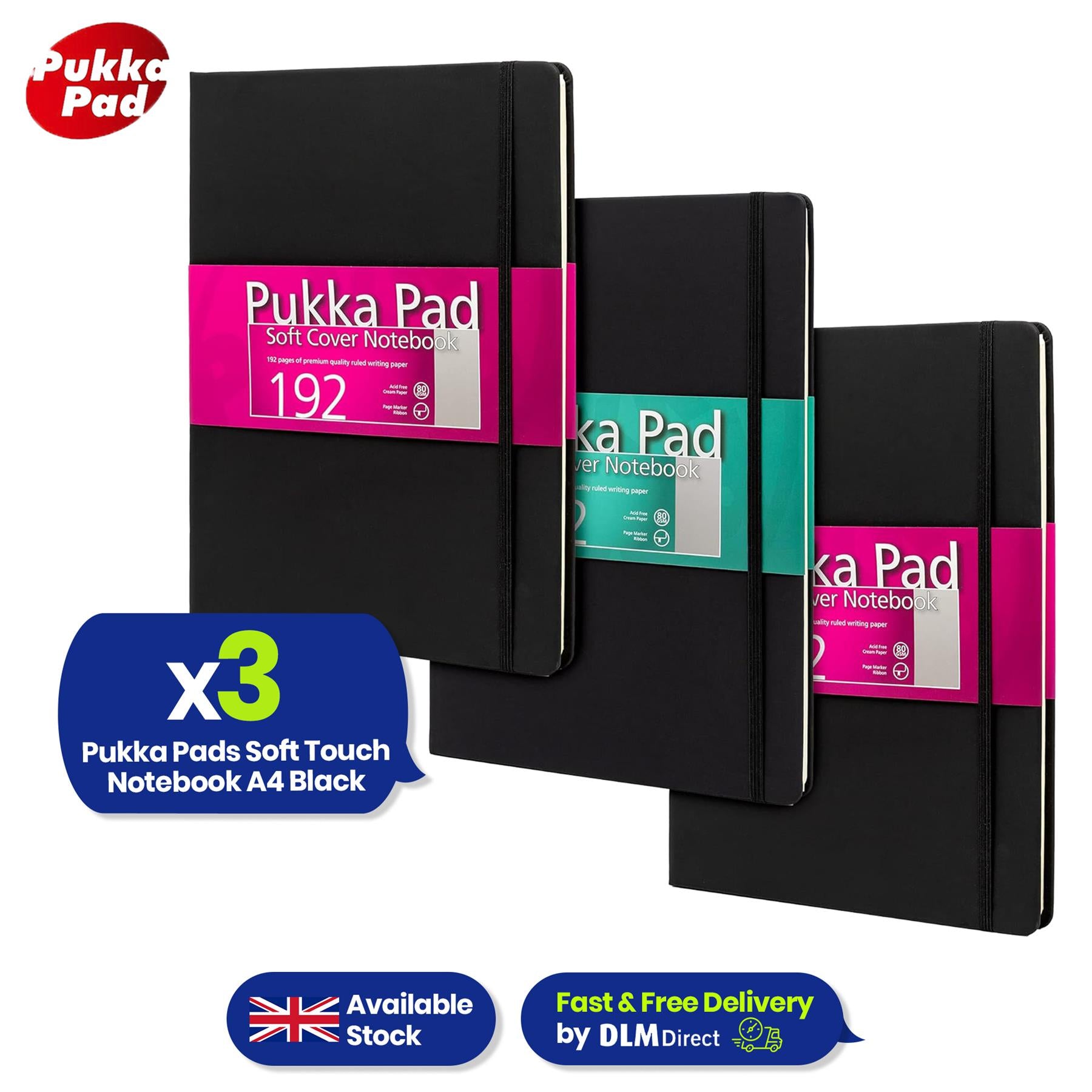 PUKKA PAD A4 BLACK NOTEBOOK — Our A4 soft cover notebooks with 192 pages of lined paper are suitable for students, professionals, writers and journaling. Use at school, work or home for clean & organised note-taking every day. Let this writing notebook capture all your thoughts and valuable information