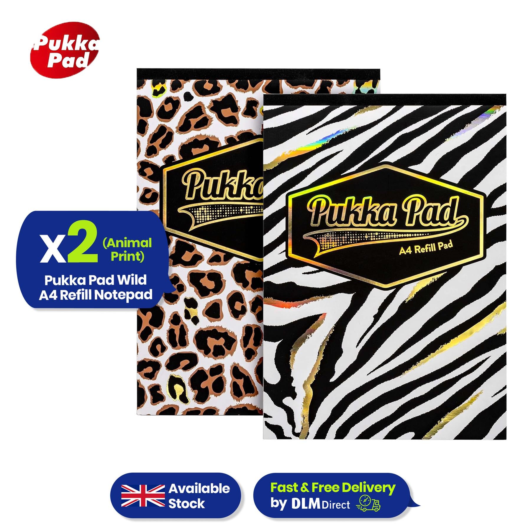 Pukka Pad A4 Refill Notepad –2 Pack Zebra & Leopard Print Writing Pad For Work Projects