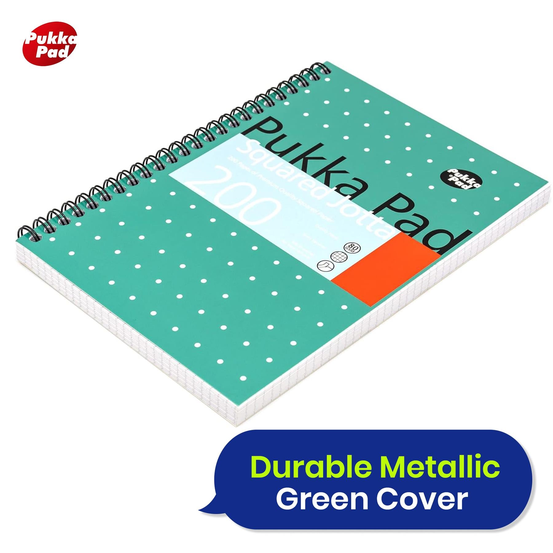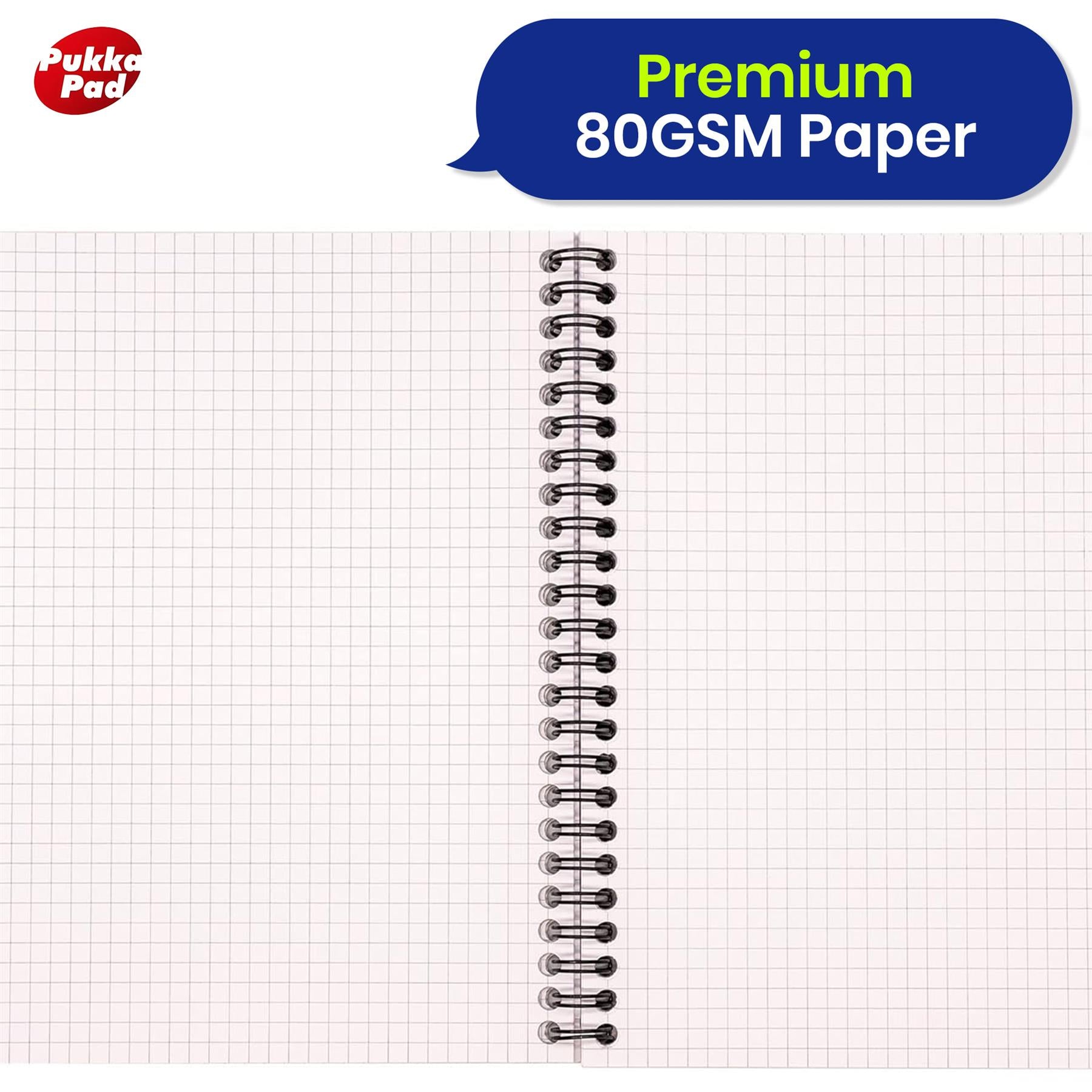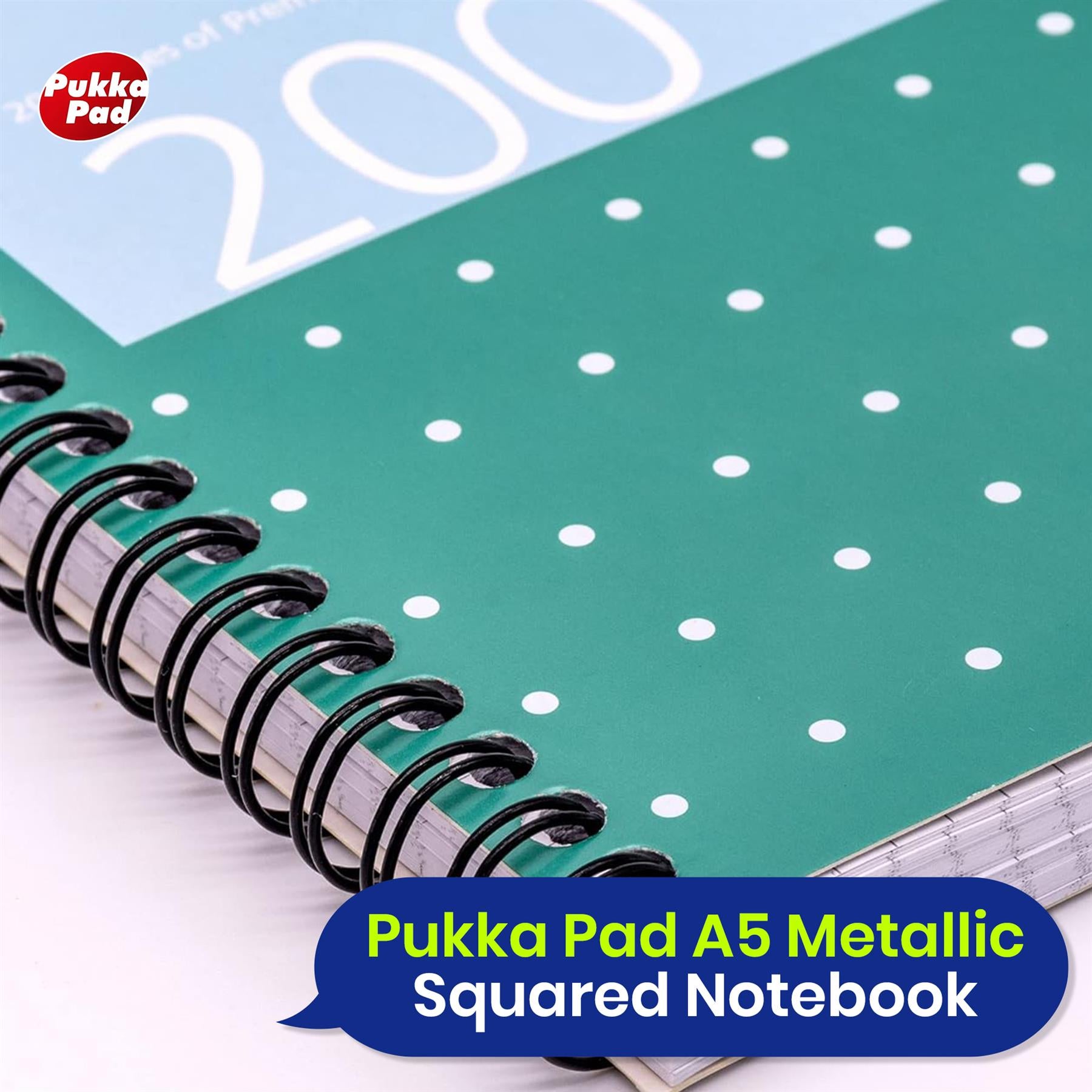 PUKKA PAD A5 WIREBOUND NOTEBOOK - The notebook is perfect for home, school, or office. This A5 wire-bound notebook lined features a trendy notebook A4 metallic squared design. Whether for notes, journaling, or work, this writing pad is a stylish and functional addition to your stationery.
