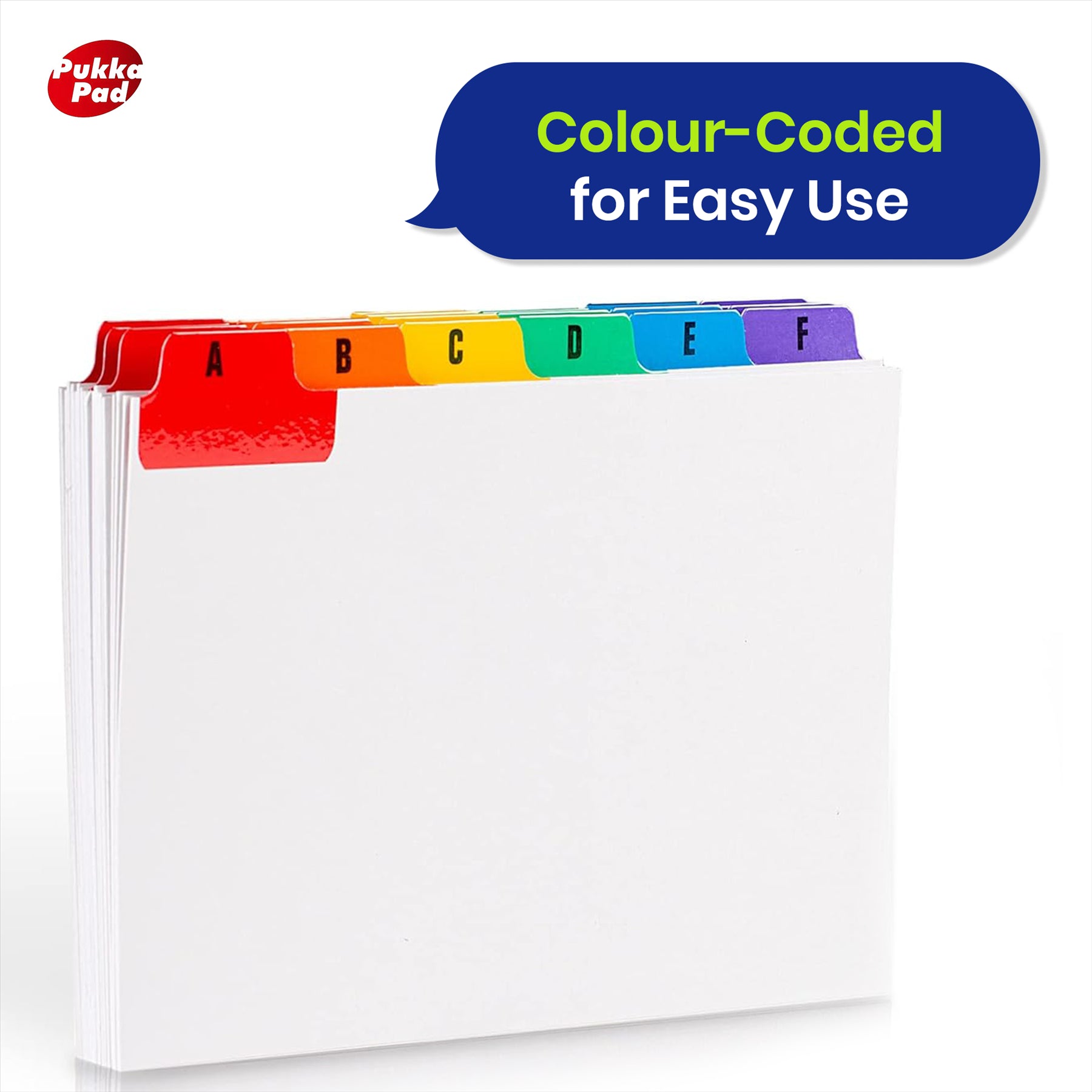 Pukka Pad Flash Cards Colour-Coded Tabs Study Cards 24 Reinforced Tabs Index Dividers for Filing Recipes Contacts Study Notes