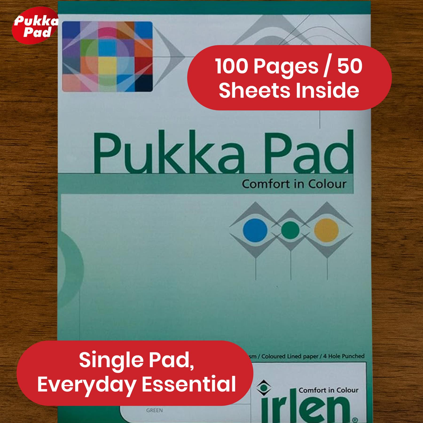 Pukka Pad Irlen A4 NotePad - 80gsm 100 Pages Green Paper Notebook, Lined Refill Notepads for Kids