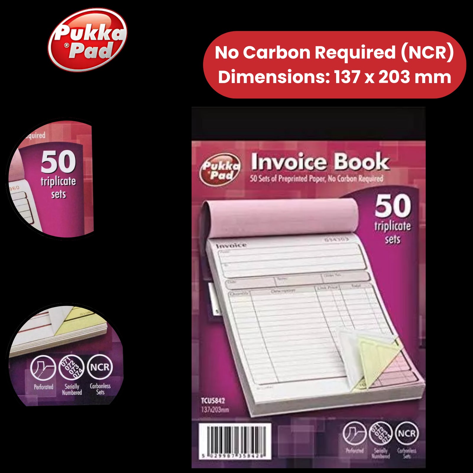 The Pukka Pad NCR Triplicate Invoice Order Book 203x137mm is tape head-bound with card covers.