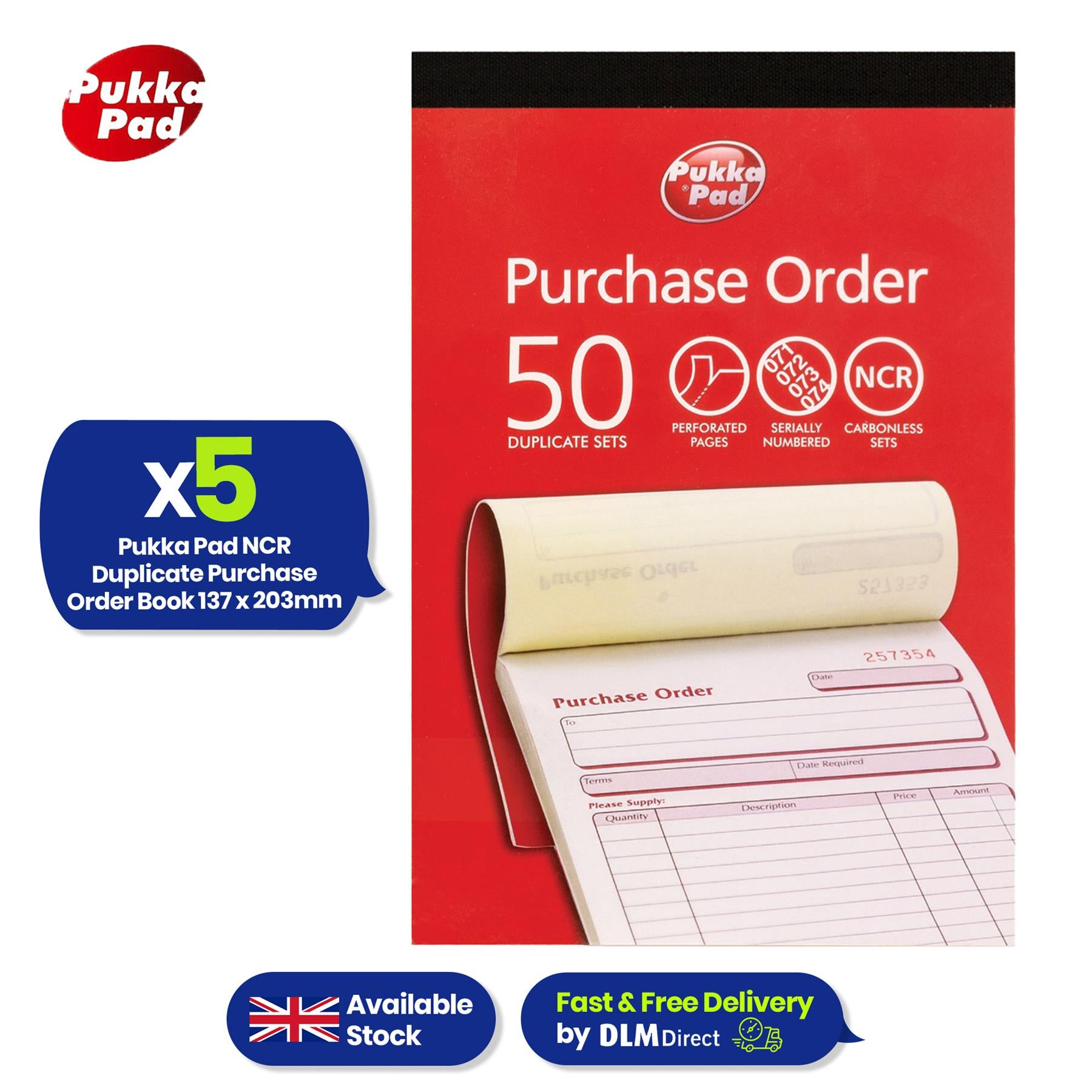 The Pukka Pad NCR Duplicate Purchase Order Book is an office supply essential for any small business, retailer or warehouse managing regular inventory flow. Each book includes 50 sets of carbonless copy system sheets, allowing you to produce instant, audit-ready duplicates without the need for a carbon sheet. Its pre-formatted entry layout includes fields for supplier information, order numbers, quantities, pricing, making it a structured purchase documentation tool for everyday use. It is made of business grade cloth taped binding, this paper-based purchase ledger is built to withstand frequent handling, whether in the office or on-site. Each page tears cleanly and duplicates clearly, giving professionals confidence during vendor communication, invoicing or compliance reviews. Packaged for productivity, this convenient 5-book set ensures your team stays organised across multiple workstations or projects. Whether you're an admin assistant, delivery coordinator or tradesperson, this everyday order tracker offers reliable, pen-to-paper accuracy you can count on in fast-paced business settings.