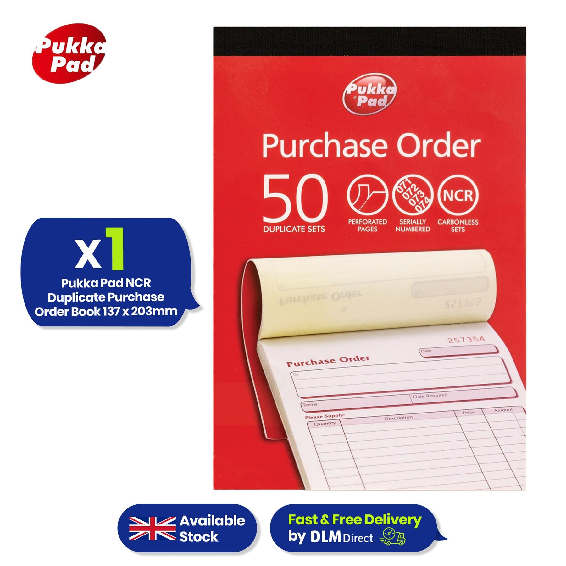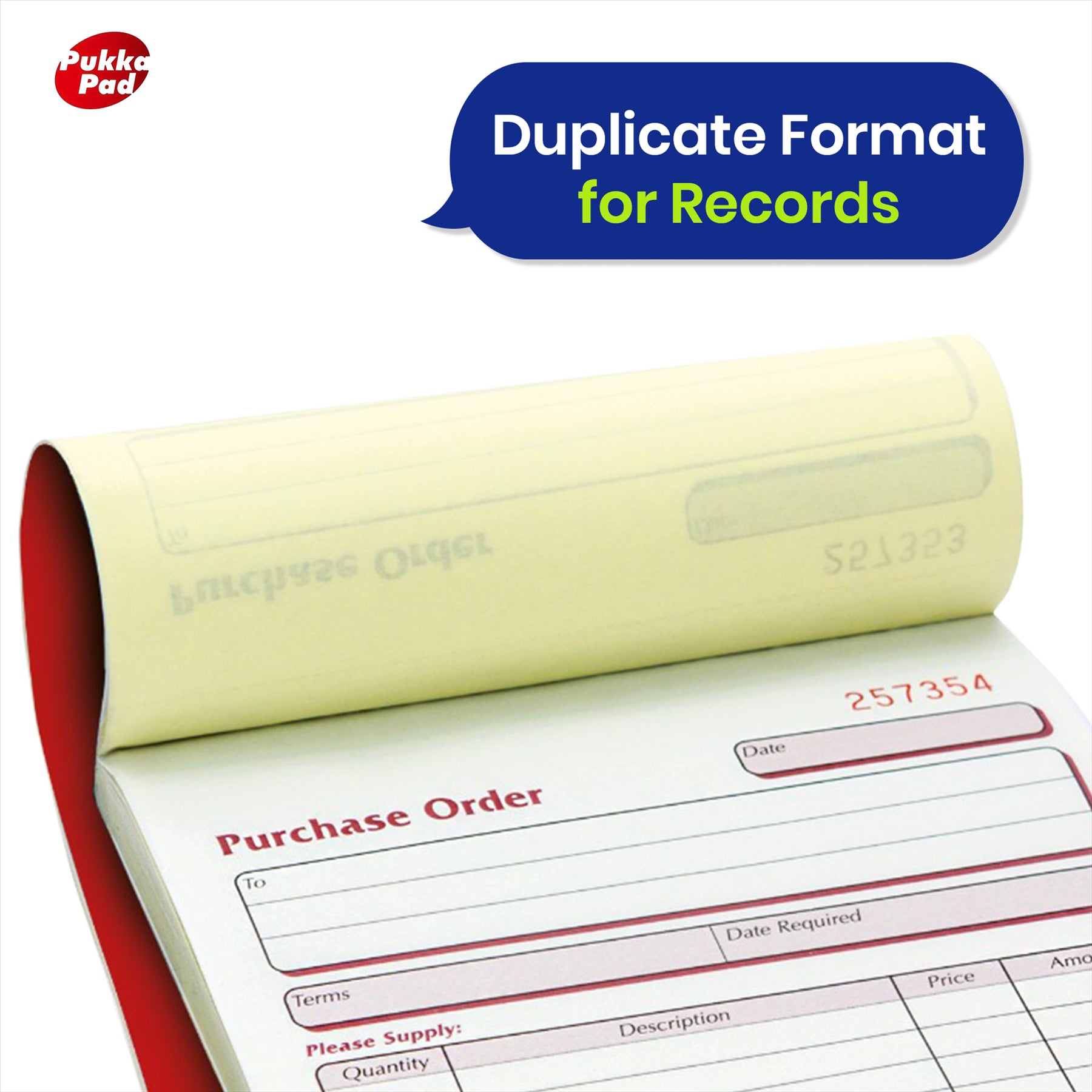 Pukka Pad Purchase Order Book Paper Duplicate NCR Record Book Carbonless Order Pads for Small Business & Office