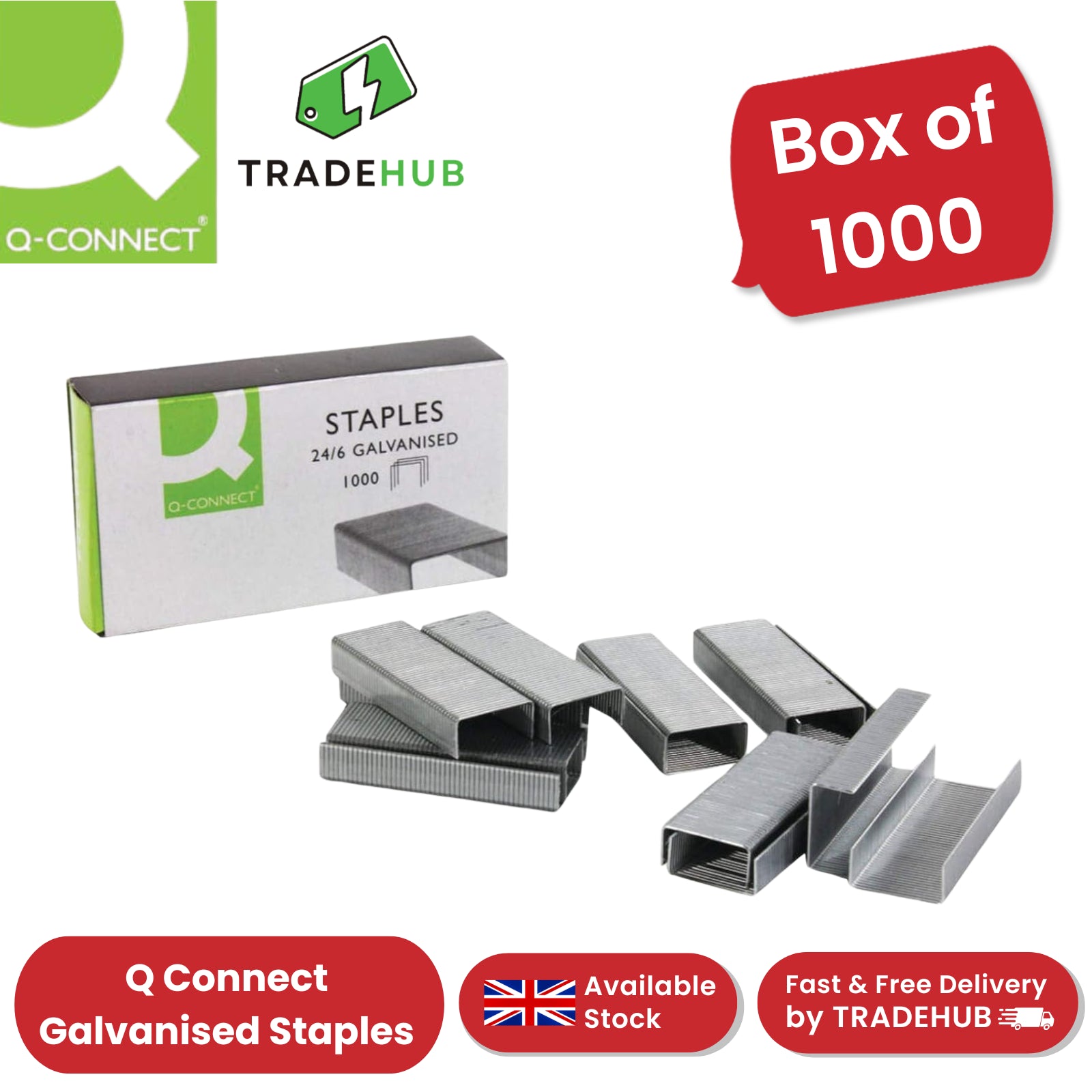 Q Connect Galvanised Staples - Box of 1000 - 1 to 5 Packs