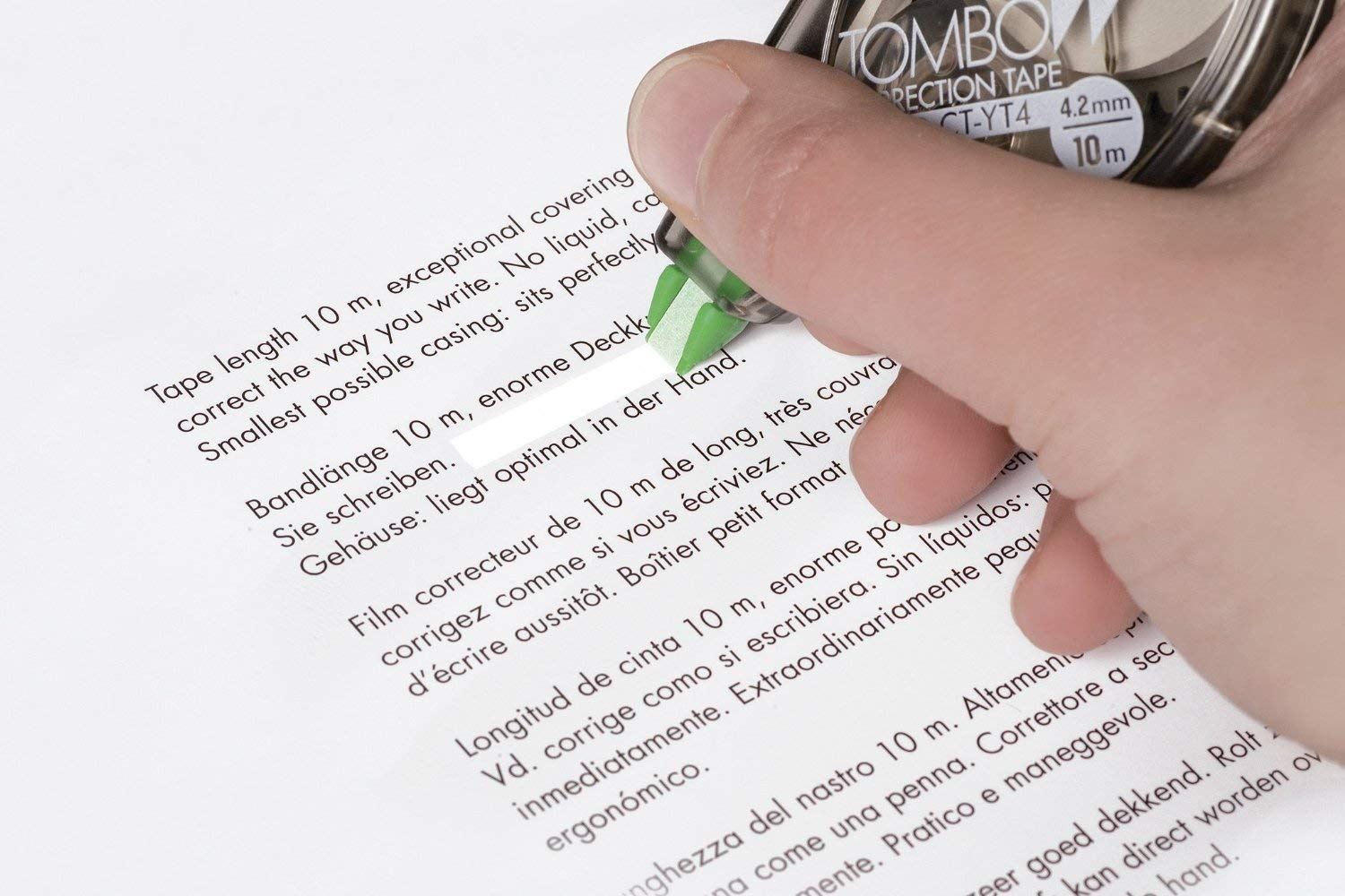 The Tombow MONO YT4 correction roller is the original of the sideways rolling technique and offers a comfortable and precise correction thanks to its ergonomic design. With this correction roller, there is no drying time, so the correction can be overwritten immediately and particularly cleanly. Thanks to its extraordinary covering power, it does not leave any copying or fax shadows, which always makes your documents look professional. The tear-resistant PET tape enables precise correction without looping and can be unrolled to the last millimetre. The transparent casing makes the tape level clearly visible and is made from 100% recycled plastic (post-consumer).
