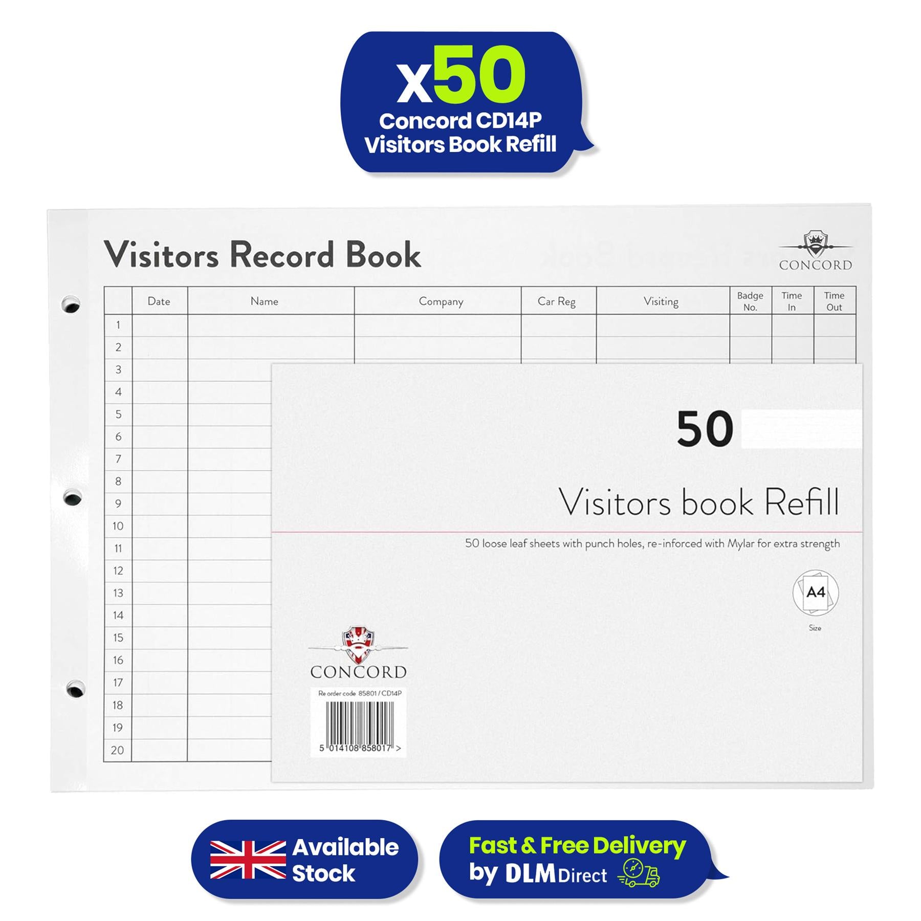 CD14P REFILL FOR VISITORS BOOK - Our visitor book refill is designed for organised and professional visitor record-keeping, with space for 2,000 entries. It allows users to note names, companies, car registrations, badge numbers, and entry and exit times, ensuring a clear and structured sign-in process for offices, schools, and businesses.