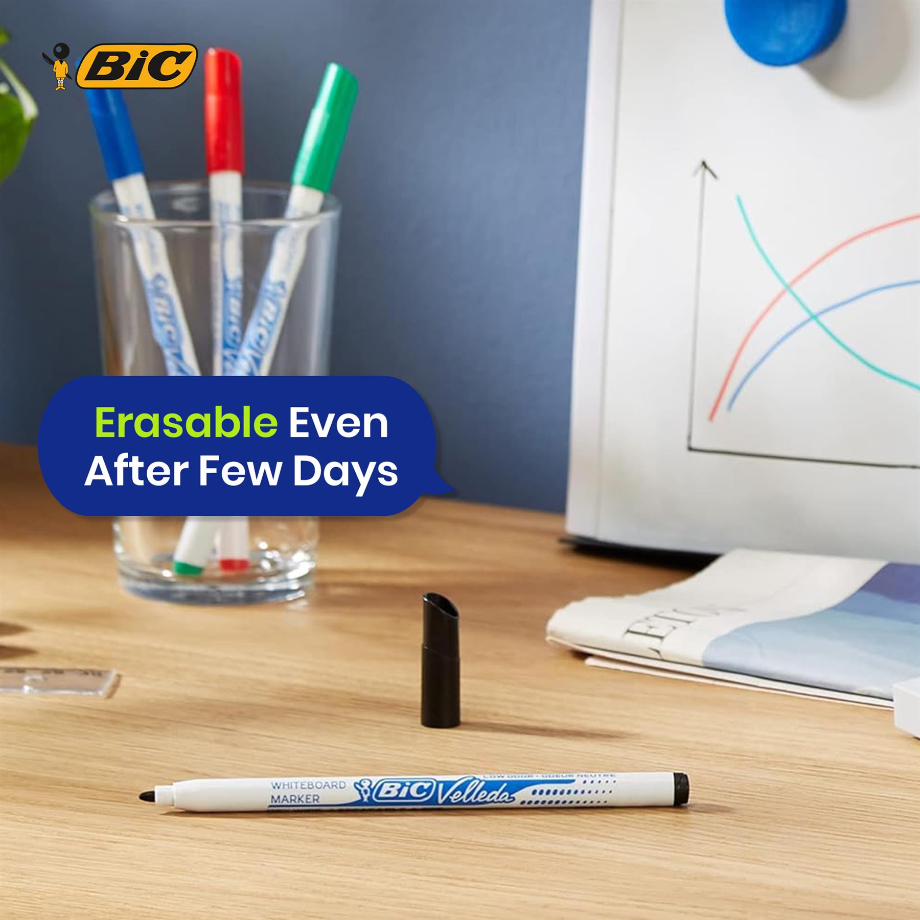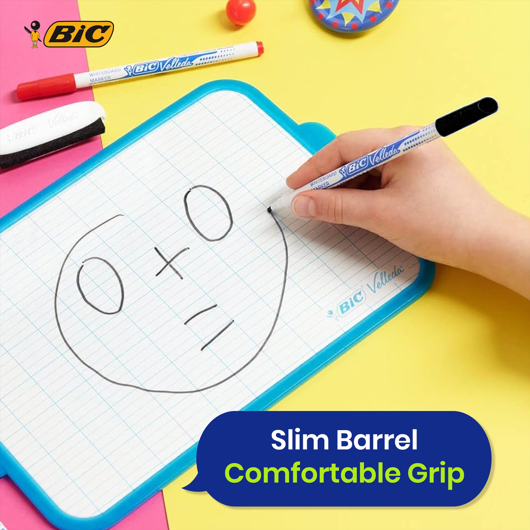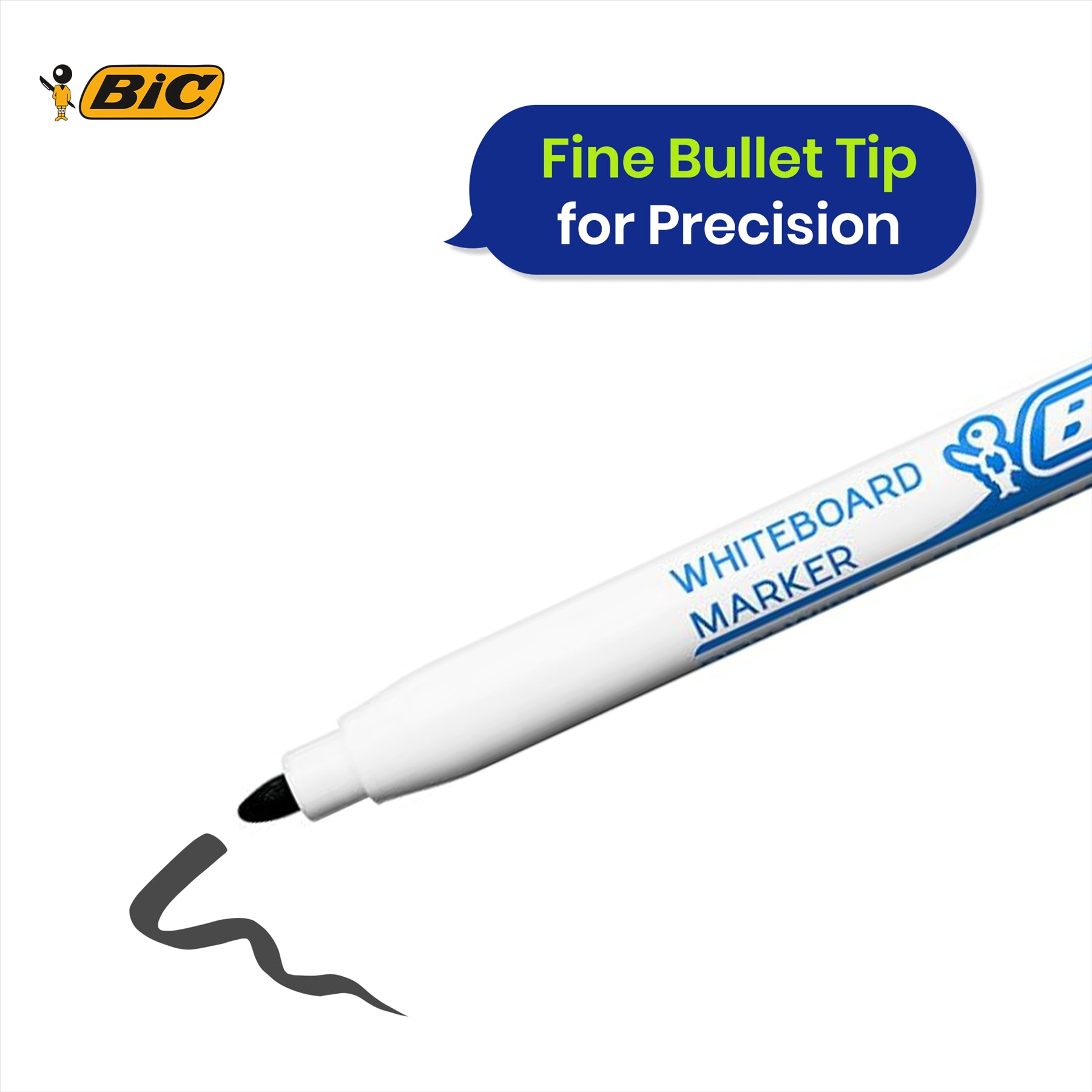 CLEAN CONTROLLED WRITING MARKER – These BIC Velleda whiteboard markers feature durable construction with fine bullet tips for precise writing & drawing. These whiteboard markers are ideal for classrooms, offices & homes. They are designed for daily whiteboard writing & easy clean erasing