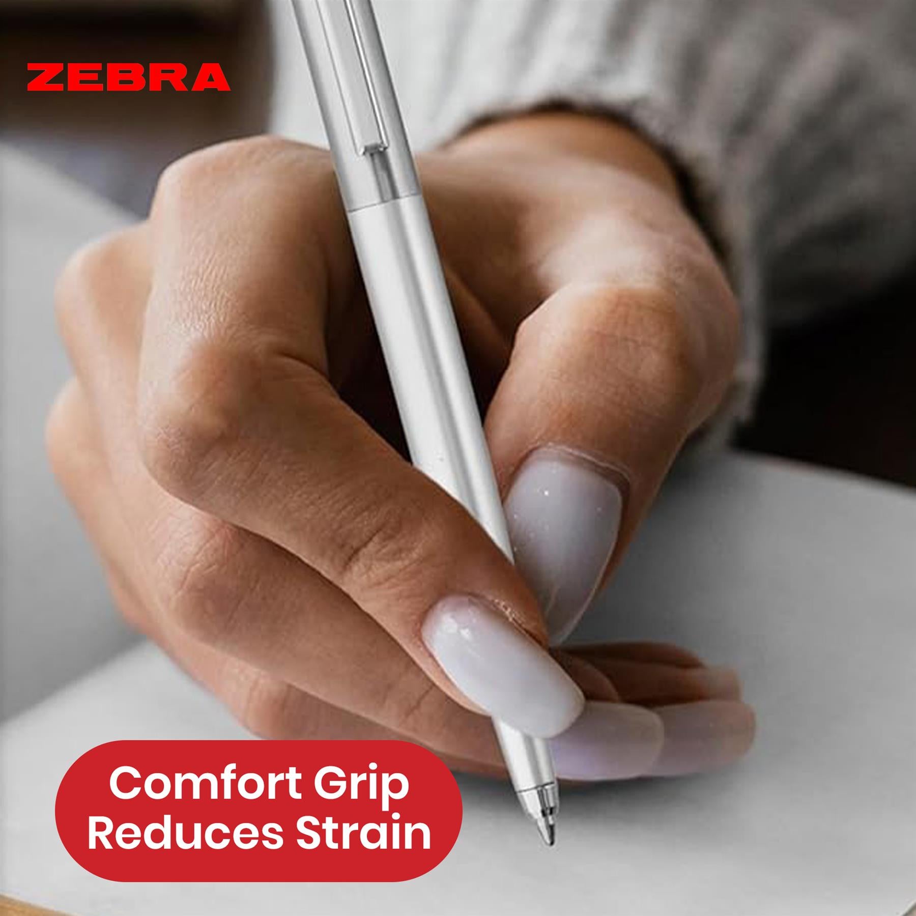 PREMIUM STYLE & COMFORT - With a sleek, well-balanced metal barrel, the Zebra Pen offers elegance, & accuracy for a flawless writing experience. These writing pens are ideal for office meetings, study sessions & creative work. The comfort fit barrel ball point reduces fatigue, so ideas flow effortlessly.