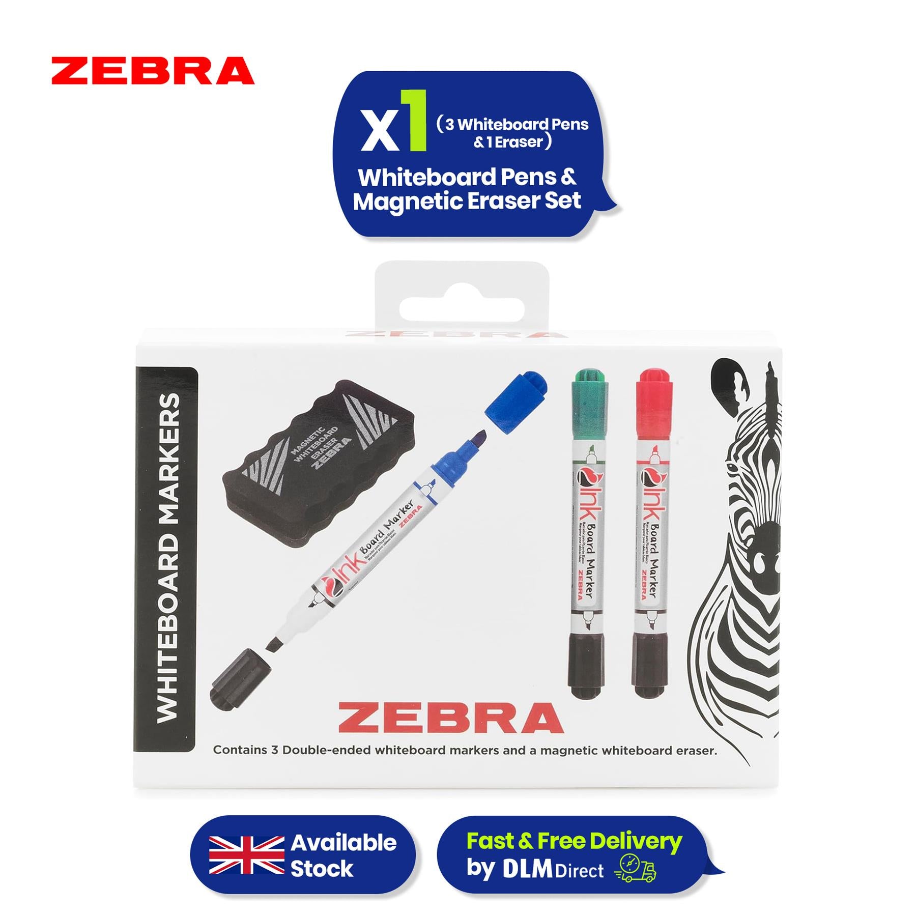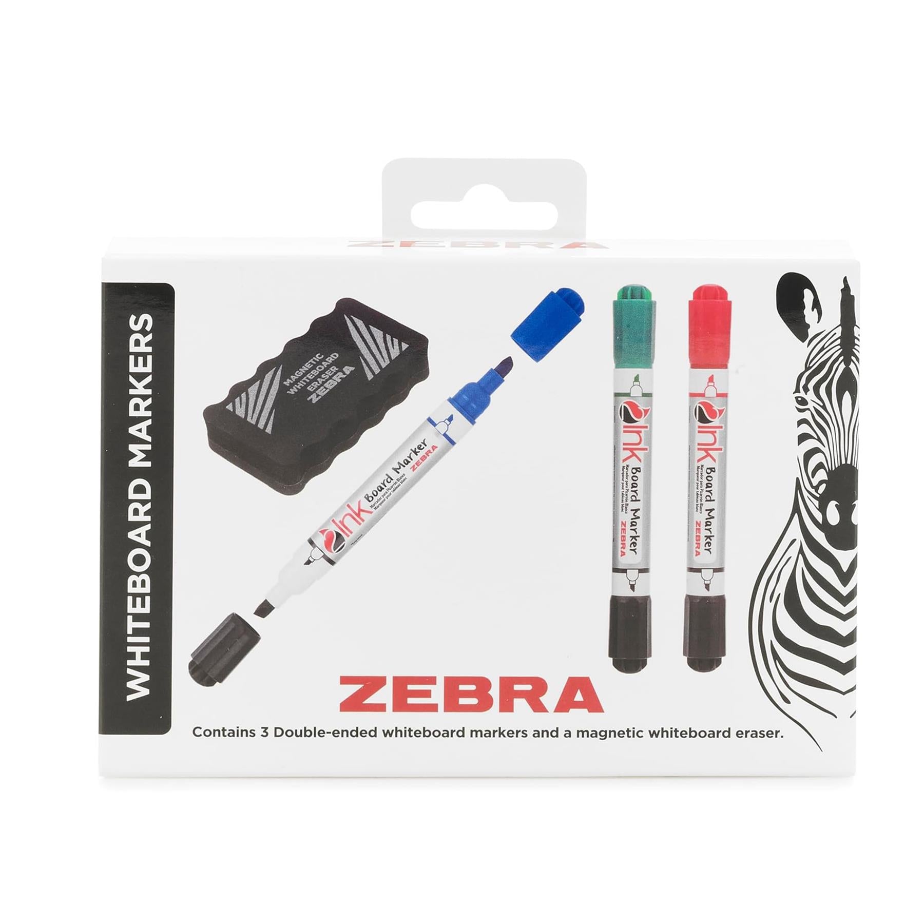 Zebra Dual Tip Whiteboard Marker Pens Pack of 3 with Magnetic Eraser 3mm Bullet Tip for Home School Office Writing Boards and Weekly Planning Use